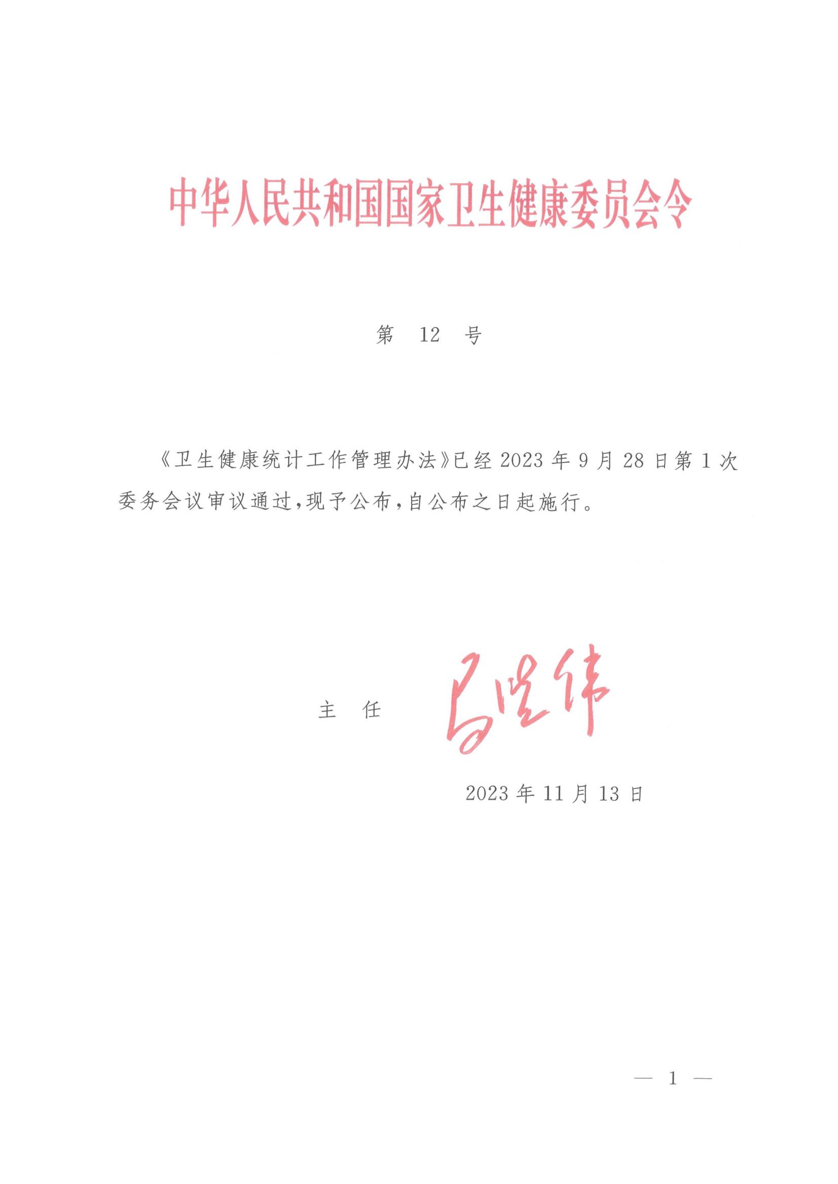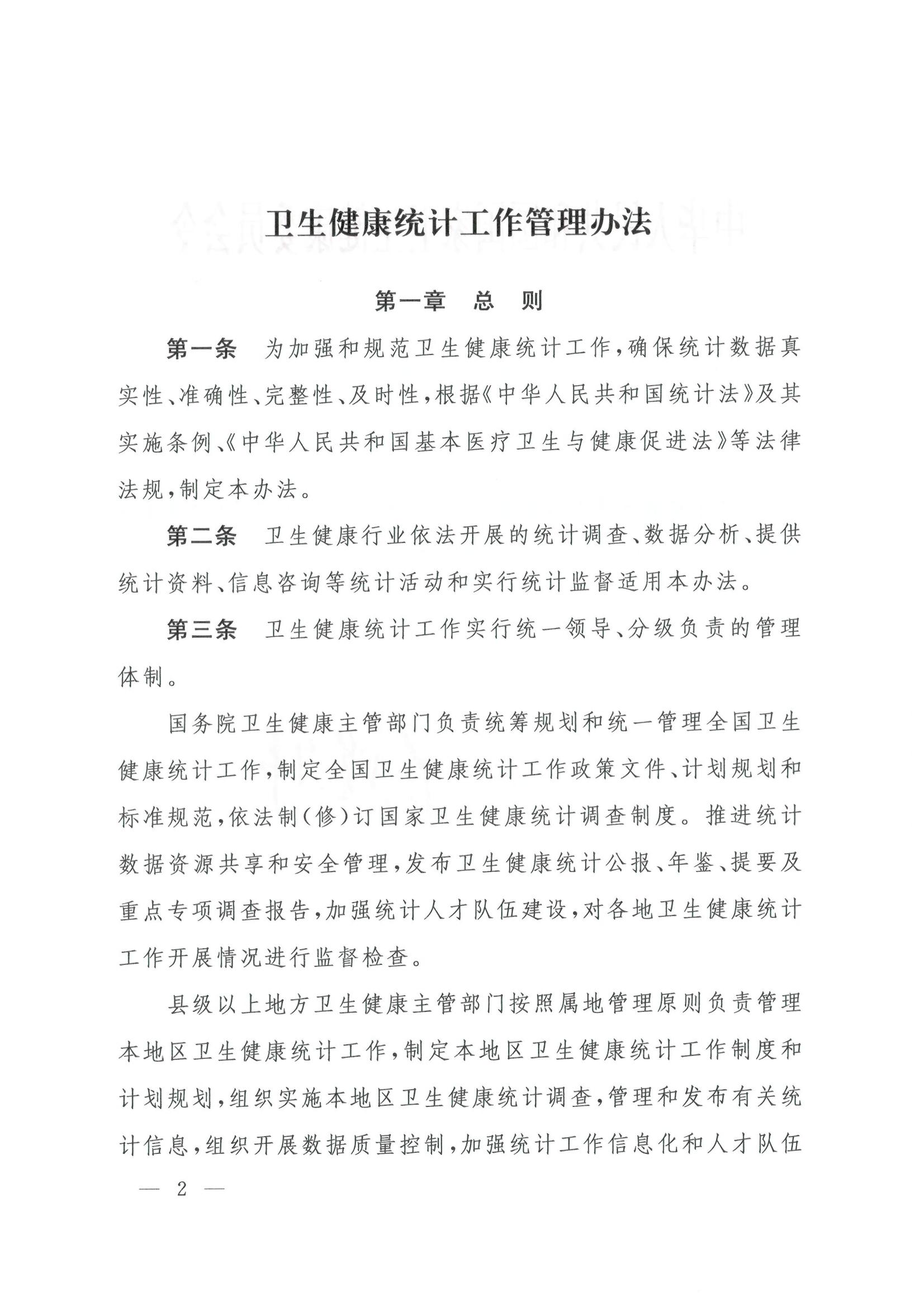 衛(wèi)生健康統(tǒng)計工作辦法管理